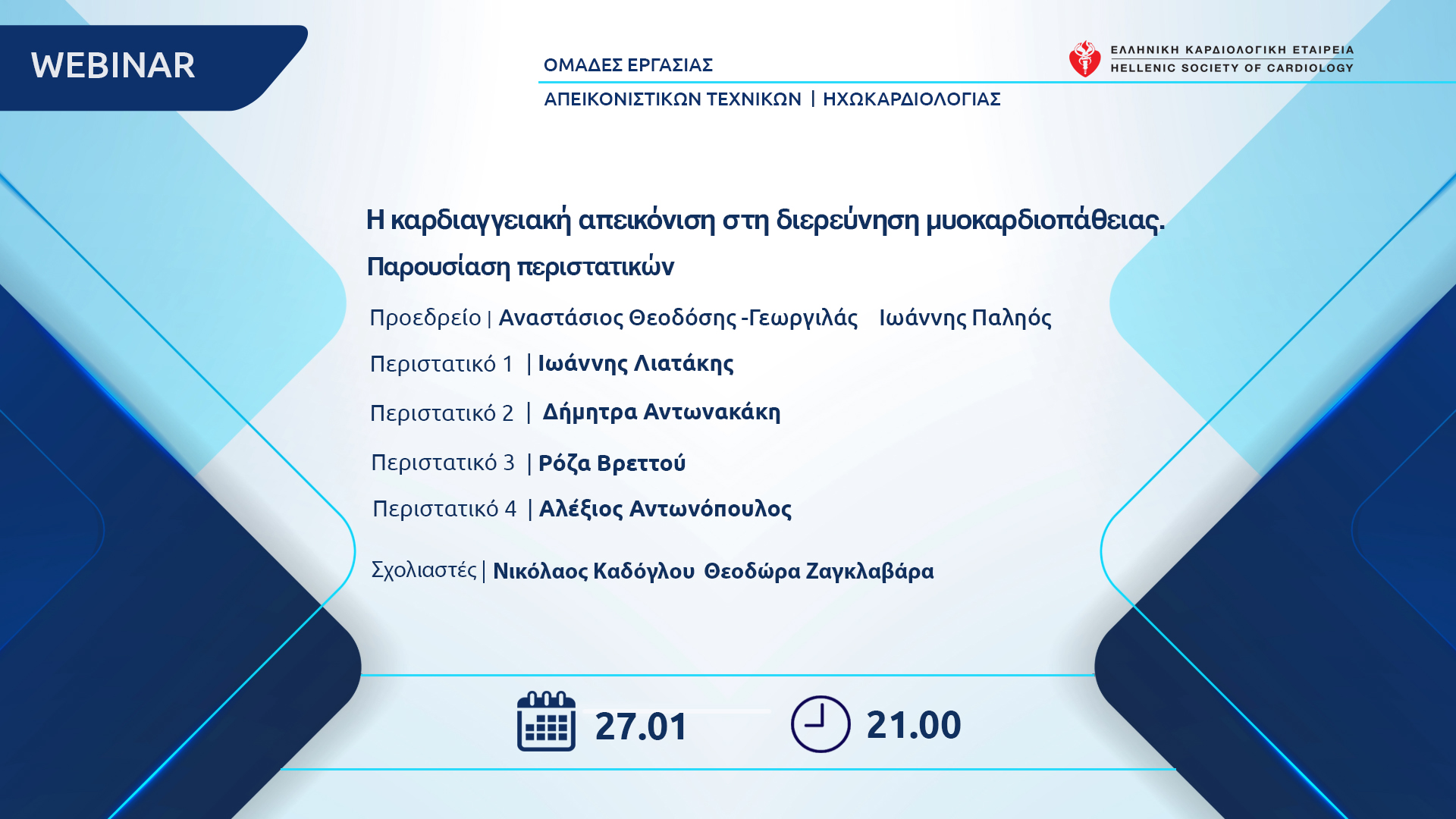 Joint Webinar | ΟΕ ΟΕ Απεικονιστικών Τεχνικών – Ηχωκαρδιολογίας Τρίτη 27 Ιανουαρίου 2026 | 21.00