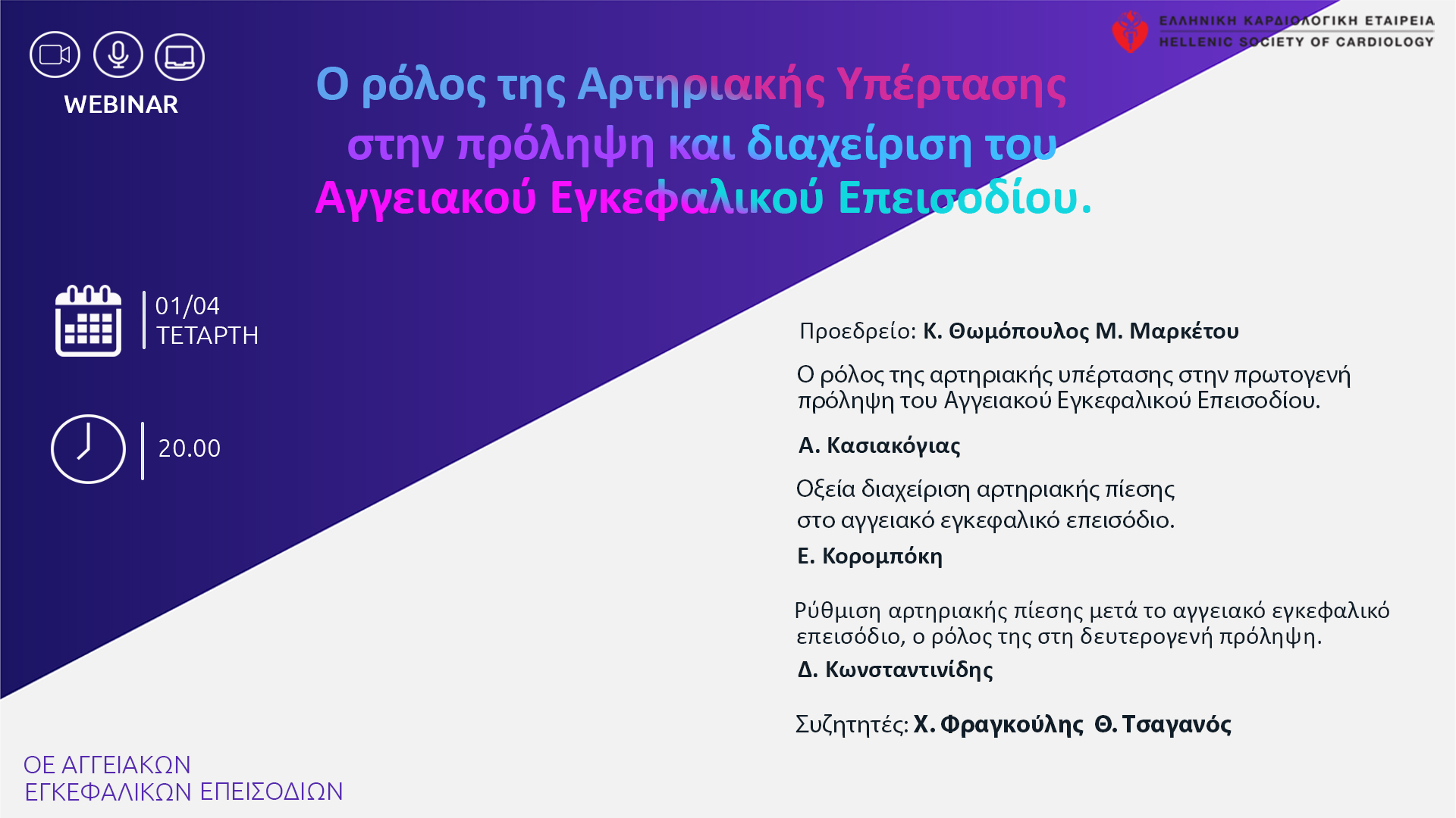 Webinar | OE Αγγειακών Εγκεφαλικών Επεισοδίων | Τετάρτη 01 Απριλίου 2026 | 20.00