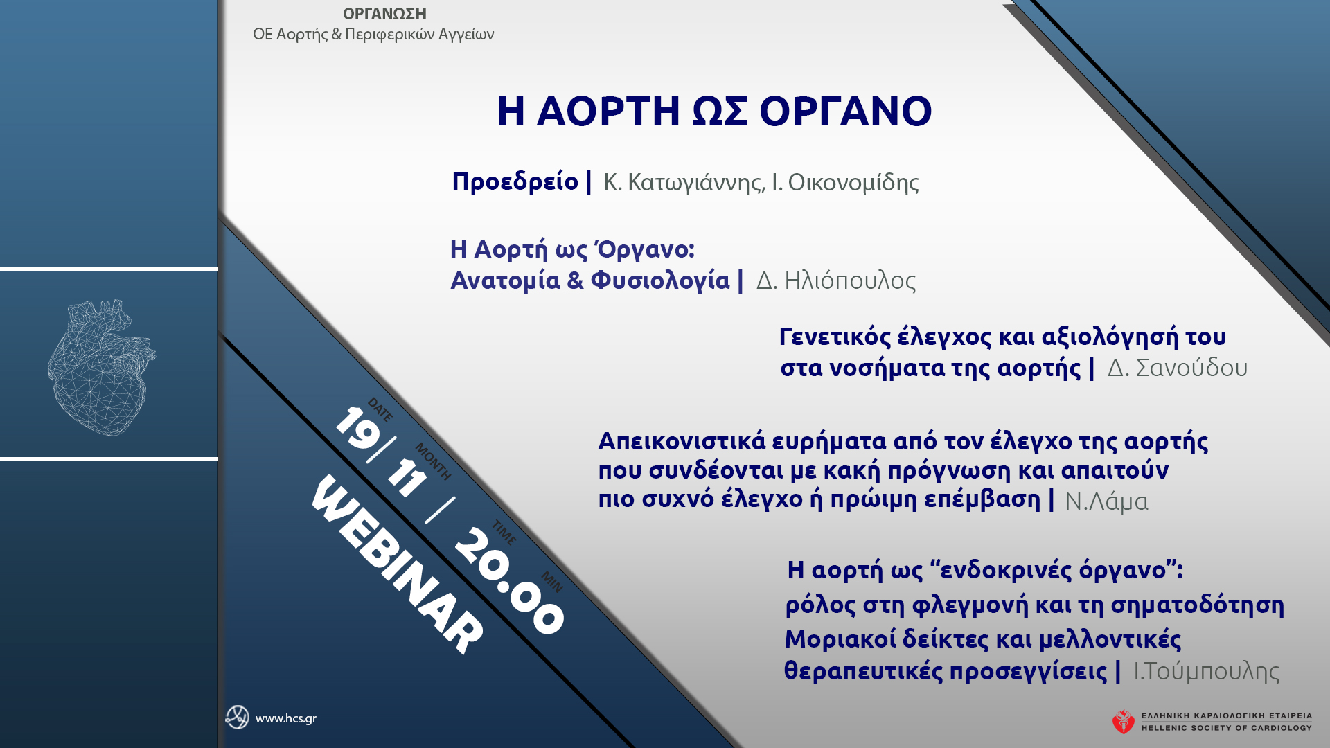 WEBINAR ΟΕ Αορτής και Περιφερικών Αγγείων | Τετάρτη 19 Νοεμβρίου 2025 | 20.00