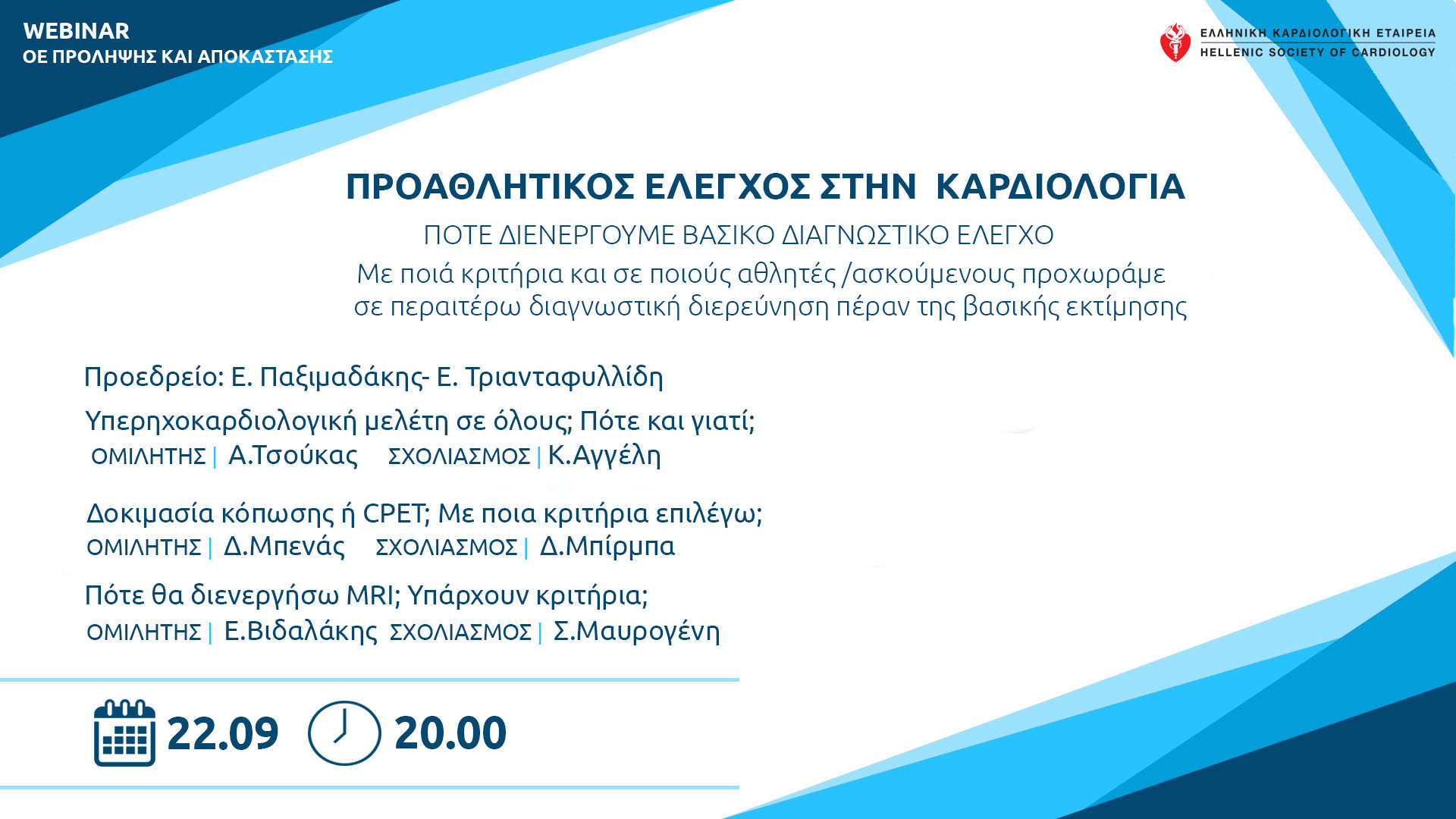 Προαθλητικός Έλεγχος στην Καρδιολογία: Πότε διενεργούμε βασικό διαγνωστικό έλεγχο και με ποια κριτήρια και σε ποιους αθλητές/ασκούμενους, προχωράμε σε περαιτέρω διαγνωστική διερεύνηση πέραν της βασικής εκτίμησης