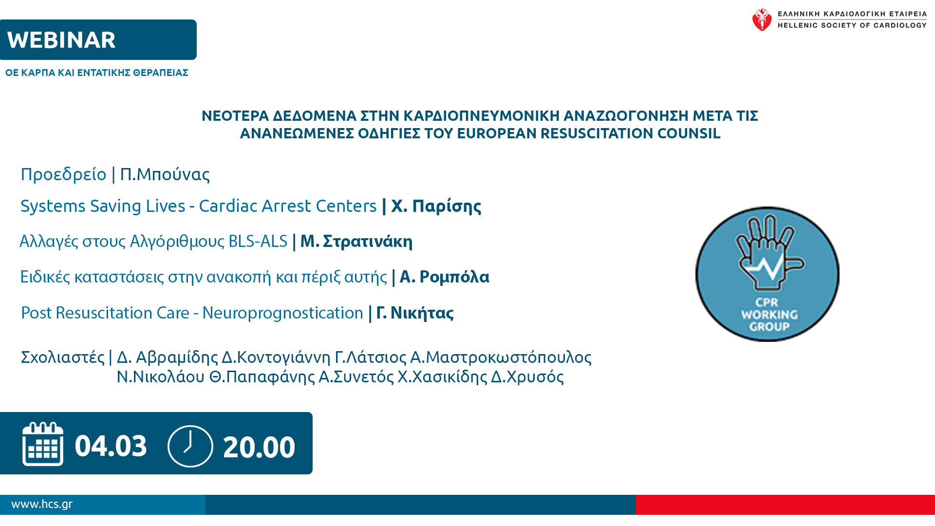 Webinar OE ΚΑΡΠΑ και Εντατικής Θεραπείας | Τετάρτη 04 Μαρτίου 2026 | 20.00