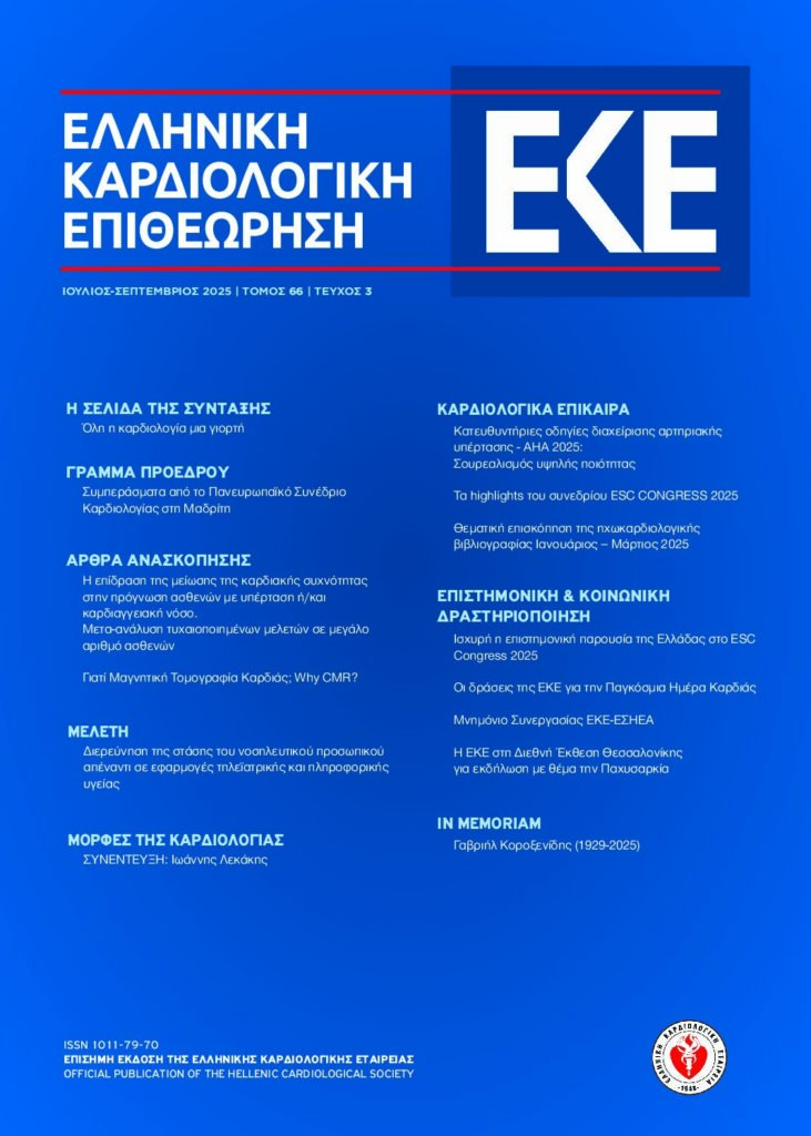 Ελληνική Καρδιολογική Εταιρεία > ΕΛΛΗΝΙΚΗ ΚΑΡΔΙΟΛΟΓΙΚΗ ΕΠΙΘΕΩΡΗΣΗ