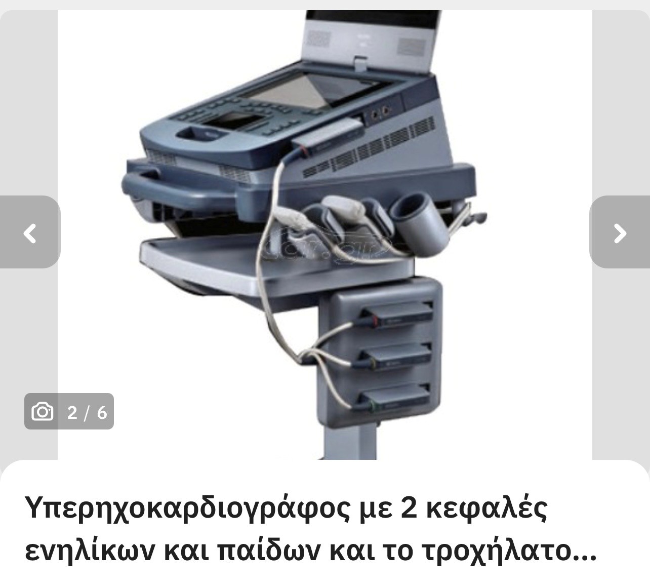 Φορητός Υπερηχοκαρδιογράφος Edan Acclarix Ax4 με 2 κεφαλές, ενηλίκων και παίδων, που μπορεί να χρησιμοποιηθεί σε όλα τα ηλικιακά group, από νεογνά μέχρι ενήλικες. Ηπιες φθορές χρήσης. Ελεγμένο πρόσφατα από την εταιρεία απο όπου αγοράστηκε, που ενέκρινε την άρτια λειτουργικότητα του. Ιδανικό για screening σε ιατρεία και χώρους εκτός νοσοκομείου. Με την βαλίτσα και την τροχήλατη βάση του που το μετατρέπει σε σταθερό μηχάνημα ιατρείου