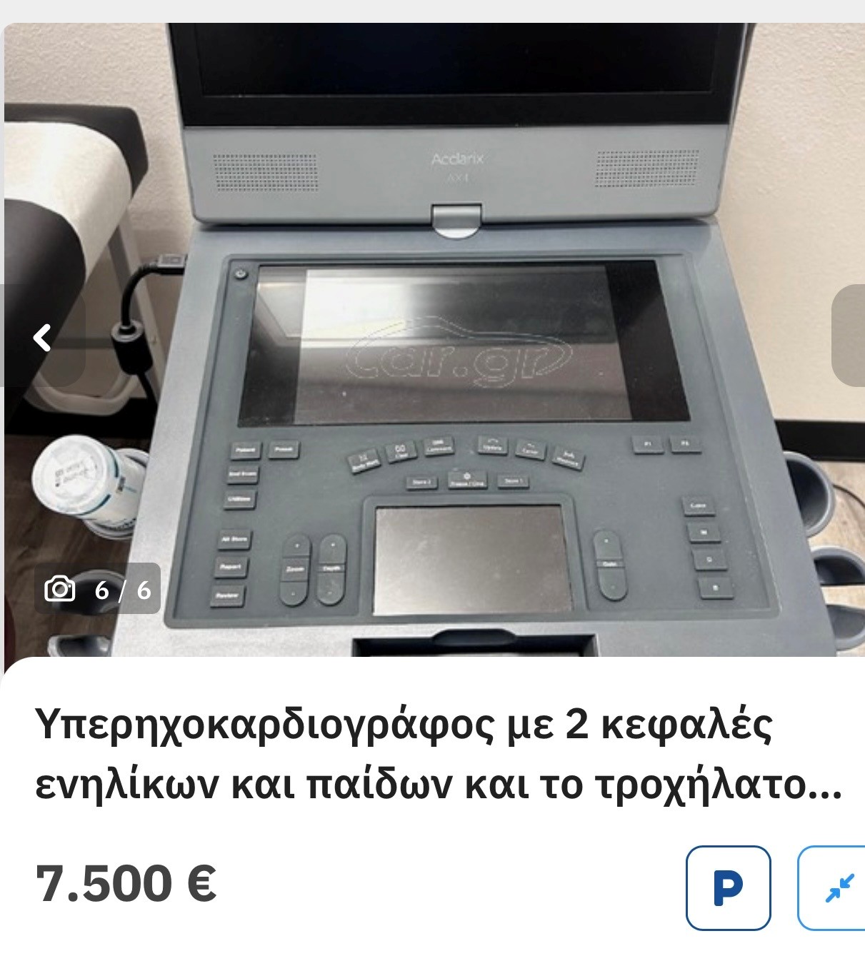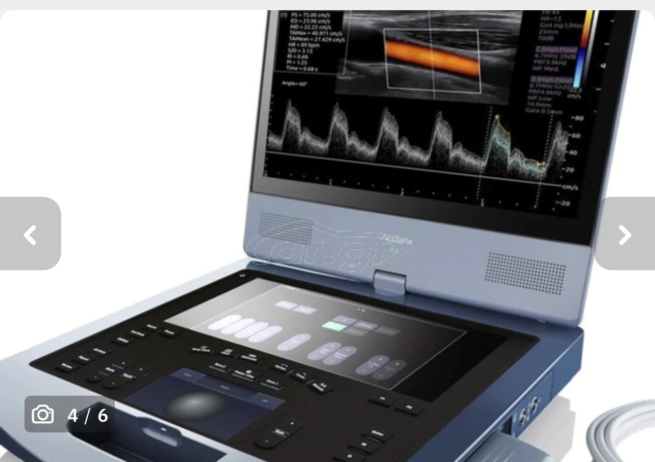 Φορητός Υπερηχοκαρδιογράφος Edan Acclarix Ax4 με 2 κεφαλές, ενηλίκων και παίδων, που μπορεί να χρησιμοποιηθεί σε όλα τα ηλικιακά group, από νεογνά μέχρι ενήλικες. Ηπιες φθορές χρήσης. Ελεγμένο πρόσφατα από την εταιρεία απο όπου αγοράστηκε, που ενέκρινε την άρτια λειτουργικότητα του. Ιδανικό για screening σε ιατρεία και χώρους εκτός νοσοκομείου. Με την βαλίτσα και την τροχήλατη βάση του που το μετατρέπει σε σταθερό μηχάνημα ιατρείου
